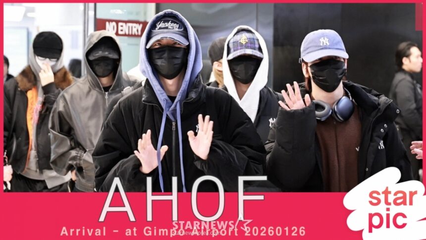 The energy was palpable as K-pop sensation AHOF made their much-anticipated Gimpo arrival this morning, January 26, after wrapping up a successful schedule in Japan. Members Steven, Seo Jeong-woo, Cha Woong-ki, Zhang Shuai-bo, Park Han, JL, Park Joo-won, Zeon, and Daisuke greeted fans with beaming smiles, signaling a triumphant return.