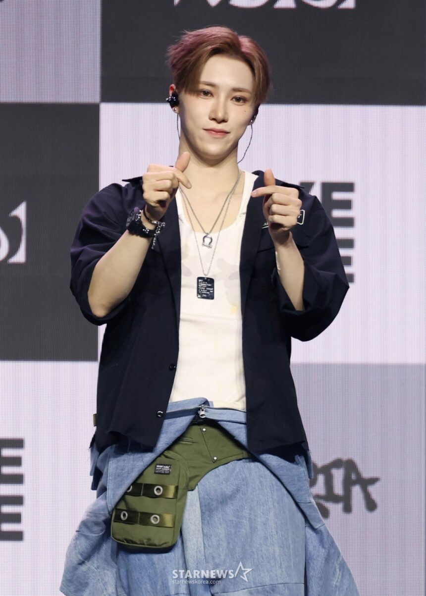 On the afternoon of January 12th, the showcase for ALPHA DRIVE ONE‘s first mini-album, ‘EUPHORIA,’ took place at Blue Square SOL Travel Hall in Hannam-dong, Yongsan-gu, Seoul. While the group — consisting of Lio, Junseo, Arno, Geonwoo, Sangwon, Xinlong, Anshin, and Sanghyun — presented their debut, all eyes were on Arno, who appeared on crutches due to a recent injury.