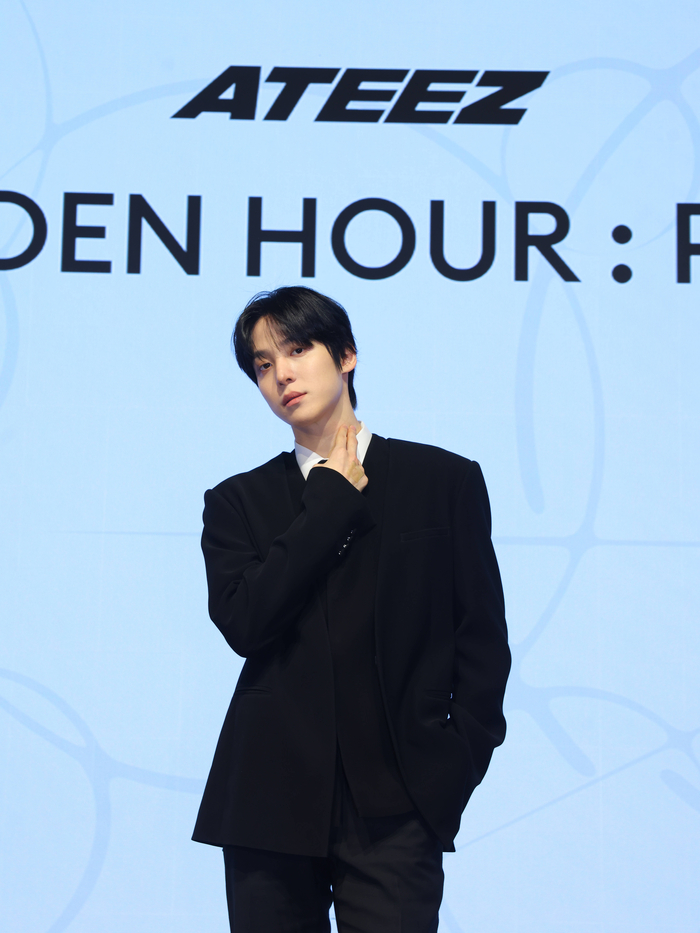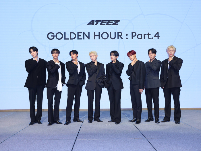 ATEEZ (Hongjoong, Seonghwa, Yunho, Yeosang, San, Mingi, Wooyoung, Jongho) gathered at the Fairmont Ambassador in Yeongdeungpo-gu, Seoul, on February 5th for the release of their 13th mini-album, ‘GOLDEN HOUR : Part.4’. They declared, “We believe every moment of ours is a ‘GOLDEN HOUR,’ and we will continue to show endless growth.” This album marks their first monumental step forward since renewing their contract with KQ Entertainment, signaling a powerful new journey. KQ Entertainment elaborated that this fourth installment in the ‘GOLDEN HOUR’ series encapsulates ATEEZ‘s unwavering resolve to press onward, even amidst a storm, holding firm to their convictions. Hongjoong echoed this sentiment, emphasizing, “This album contains ATEEZ‘s ambition to keep moving forward according to our beliefs.” He added, “If you listen to all the tracks, you’ll understand why we returned with the fourth series of ‘GOLDEN HOUR’.” This is truly a narrative crafted with their fans’ journey in mind. ✨