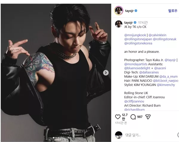 On January 5th (local time), renowned photographer Tayo Kuku Jr. unveiled exclusive footage from Jung Kook’s Rolling Stone UK, Korea, and Japan cover shoots on his Instagram and TikTok. The video captures Jung Kook’s undeniable charisma, showcasing him in sleek Calvin Klein attire, confidently revealing his iconic tattoos. The sheer magnetism of his presence resonated instantly with fans worldwide, validating his status as a true visual and performance icon.