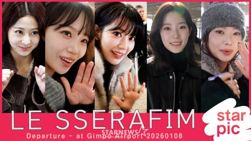 On January 8, 2026, members Sakura, Hong Eunchae, Kazuha, Kim Chaewon, and Huh Yunjin were spotted exuding their signature elegance and charisma as they departed through Gimpo International Airport. Their departure signifies their attendance at the renowned Golden Disc Awards, an event celebrating the year’s most impactful music releases and artists in South Korea.