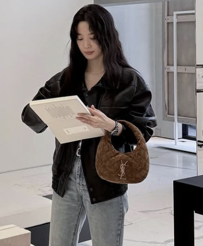 Lee Chung-ah Elevates Casual Chic with Saint Laurent’s Suede Mini Bag