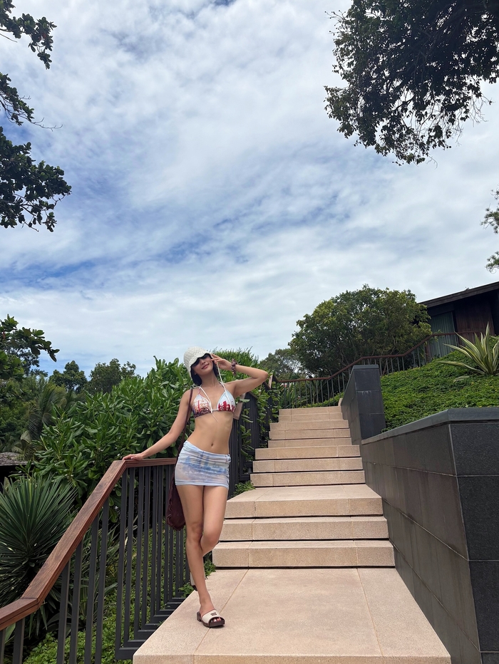 The revealed photos capture Minnie against a breathtaking, exotic beach backdrop, confidently flaunting her daring bikini style. She effortlessly exuded both a refreshing and undeniably sexy aura, perfectly fitting the tropical vibe.