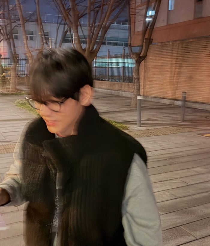 • 💘 Sporting an effortlessly chic “nerdy” look, combining a sleek black coat with horn-rimmed glasses and a cozy plaid muffler, absolutely captivating hearts with his unique blend of sophistication and approachable charm.